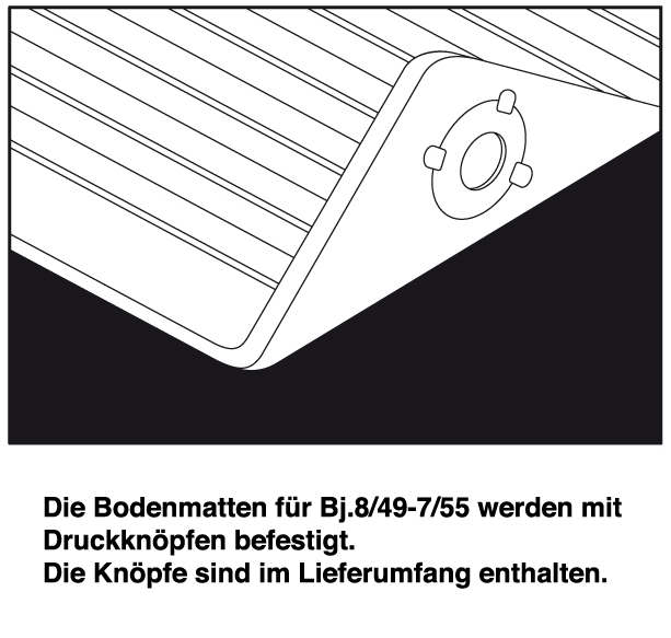 Der Bodenmattensatz wird mit den Befestigungen geliefert.
