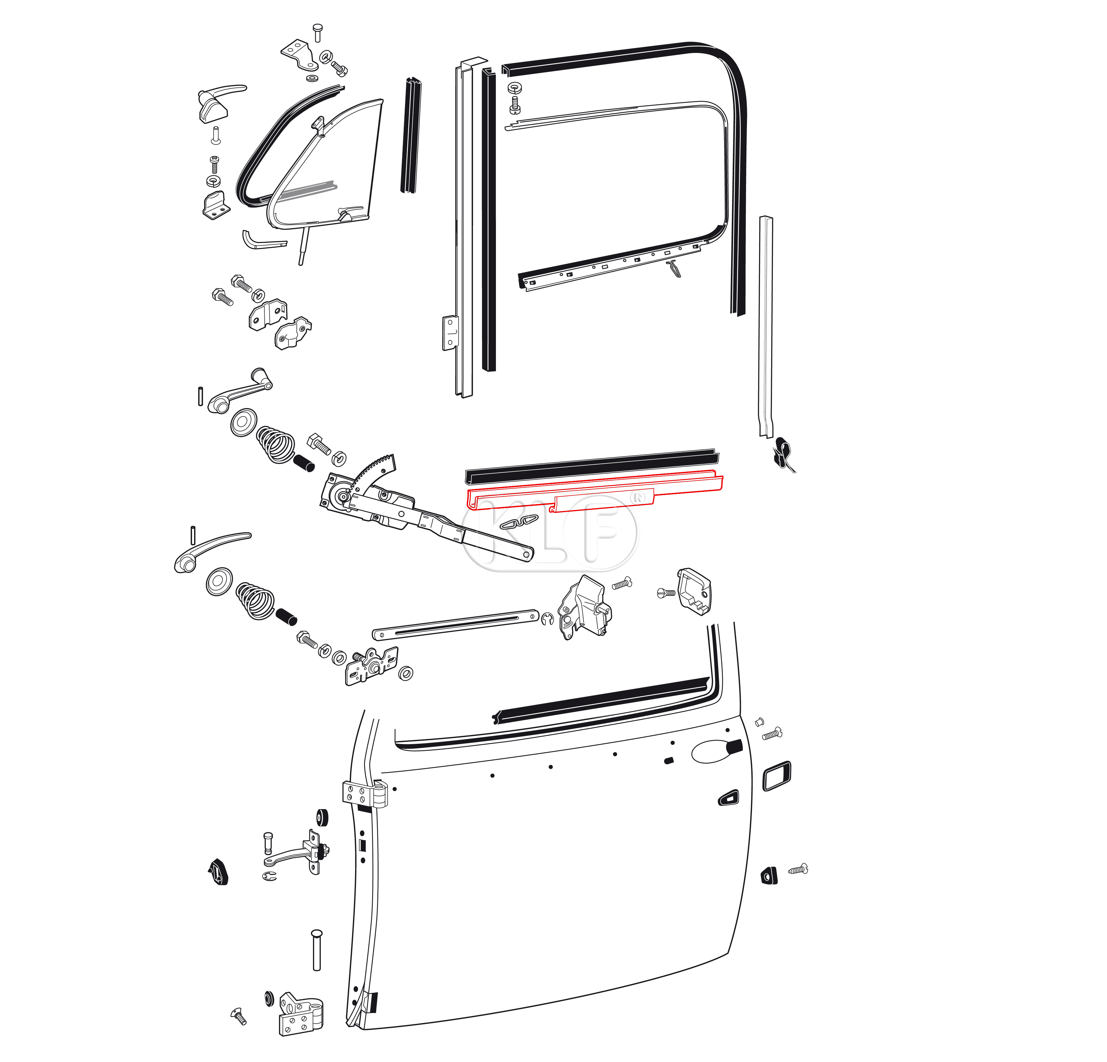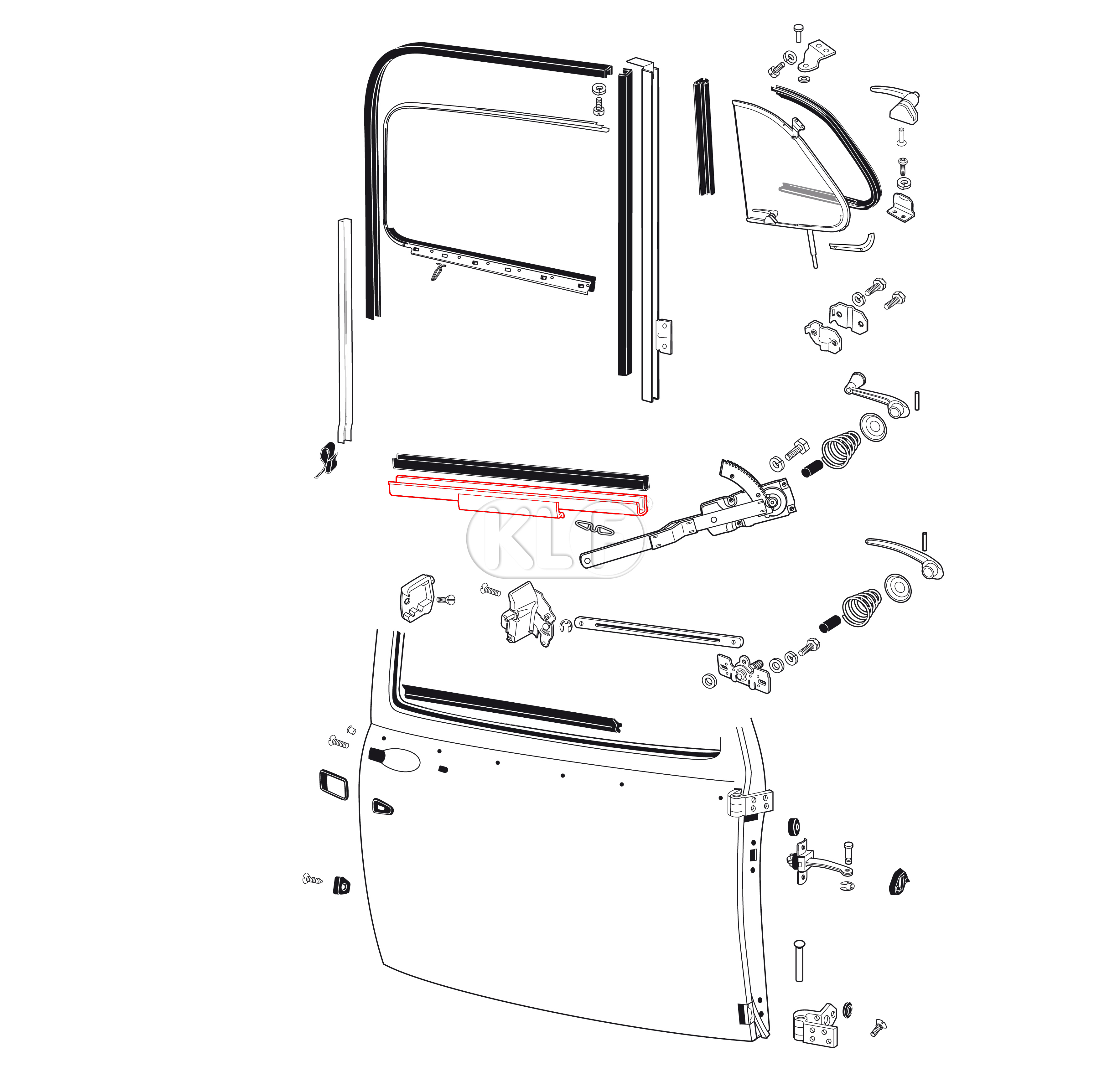 Hebeschiene für Türscheibe, links und rechts passend, nicht Cabrio, Bj. 10/52 - 07/64