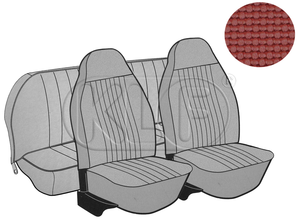 Artikelinformationen "Sitzbezüge vorne und hinten, Cabrio, Korbmuster, rot, mit integrierter Kopfstütze, Satz, Bj. 08/72 - 07/73"