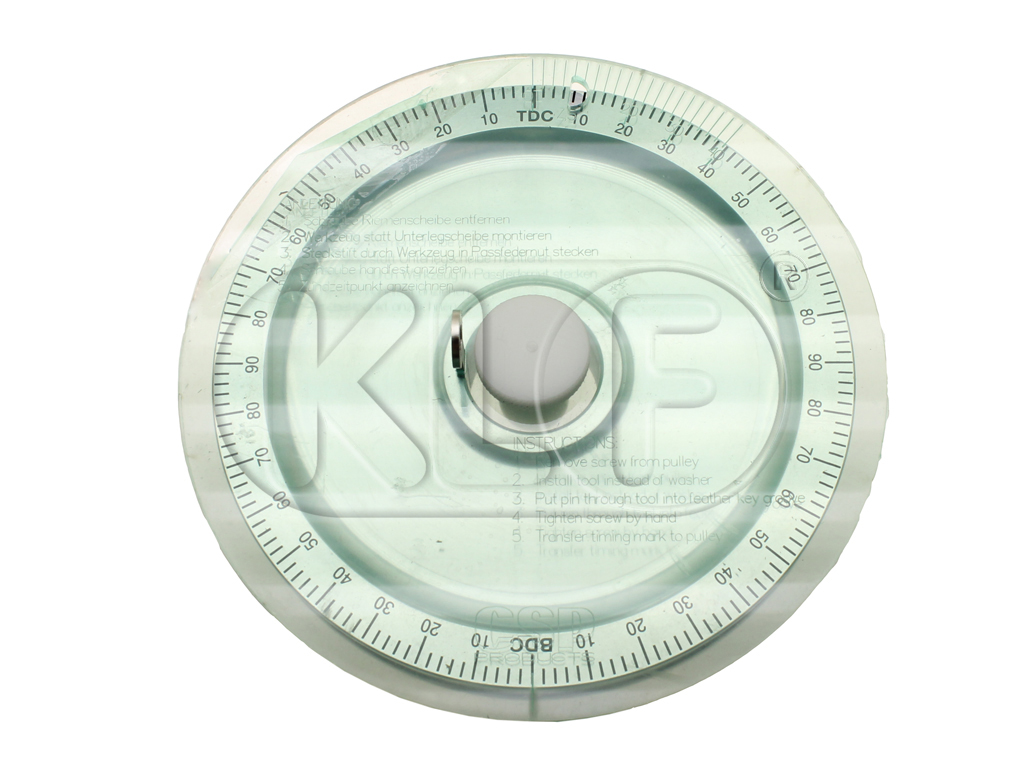 Die Skalierungsmessplatte kann bei allen Serien-Riemenscheiben und bei Zubehör-Teilen mit 175 und 170 mm Durchmesser verwendet werden und darf in keiner Werkstatt fehlen!