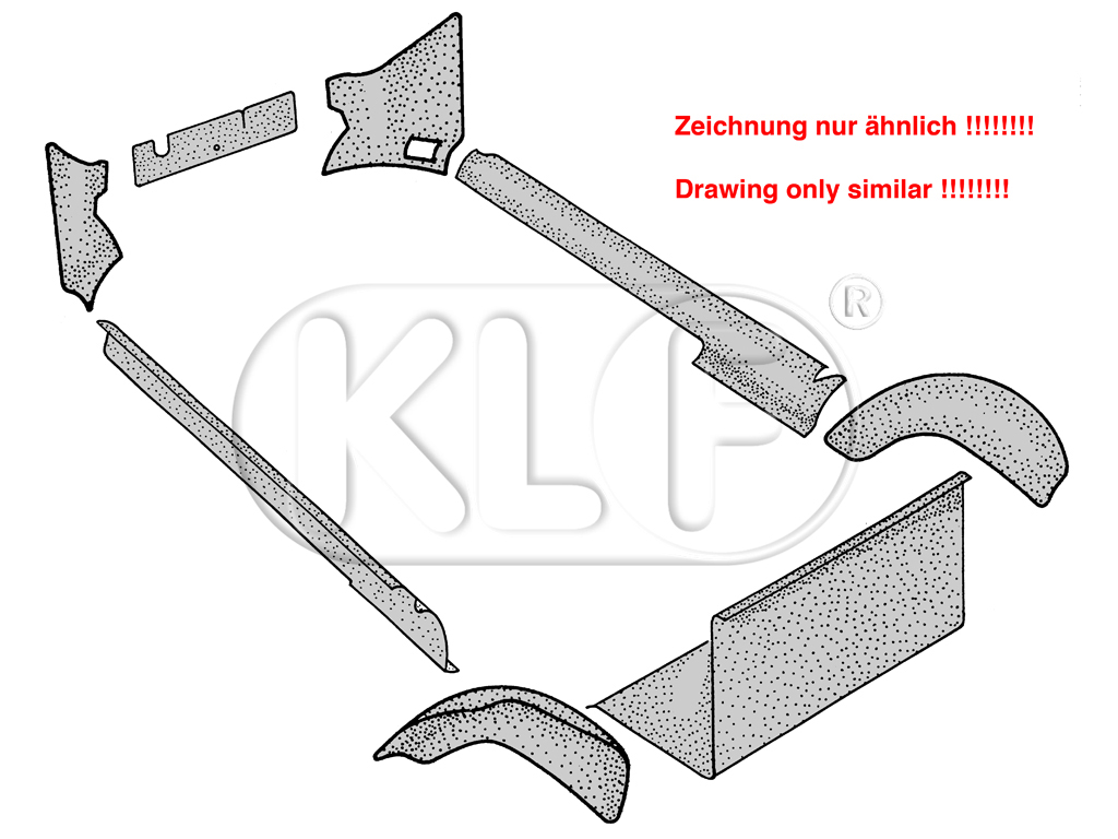 Dieser Teppichsatz beinhaltet 8 Teile und ist der Passform dem Original-Teppich nachempfunden.