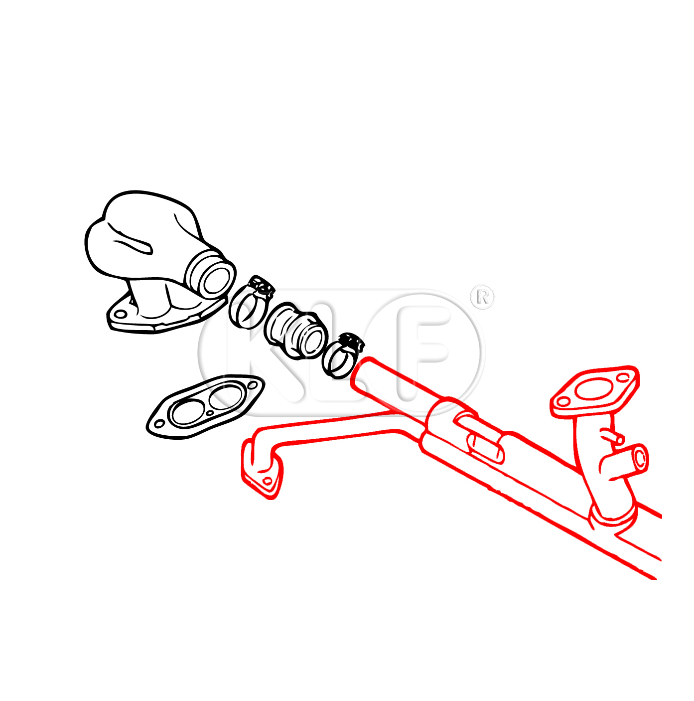 Manifold, dual port head, single heat riser, 1600ccm, 37 kW (50 PS) performance version