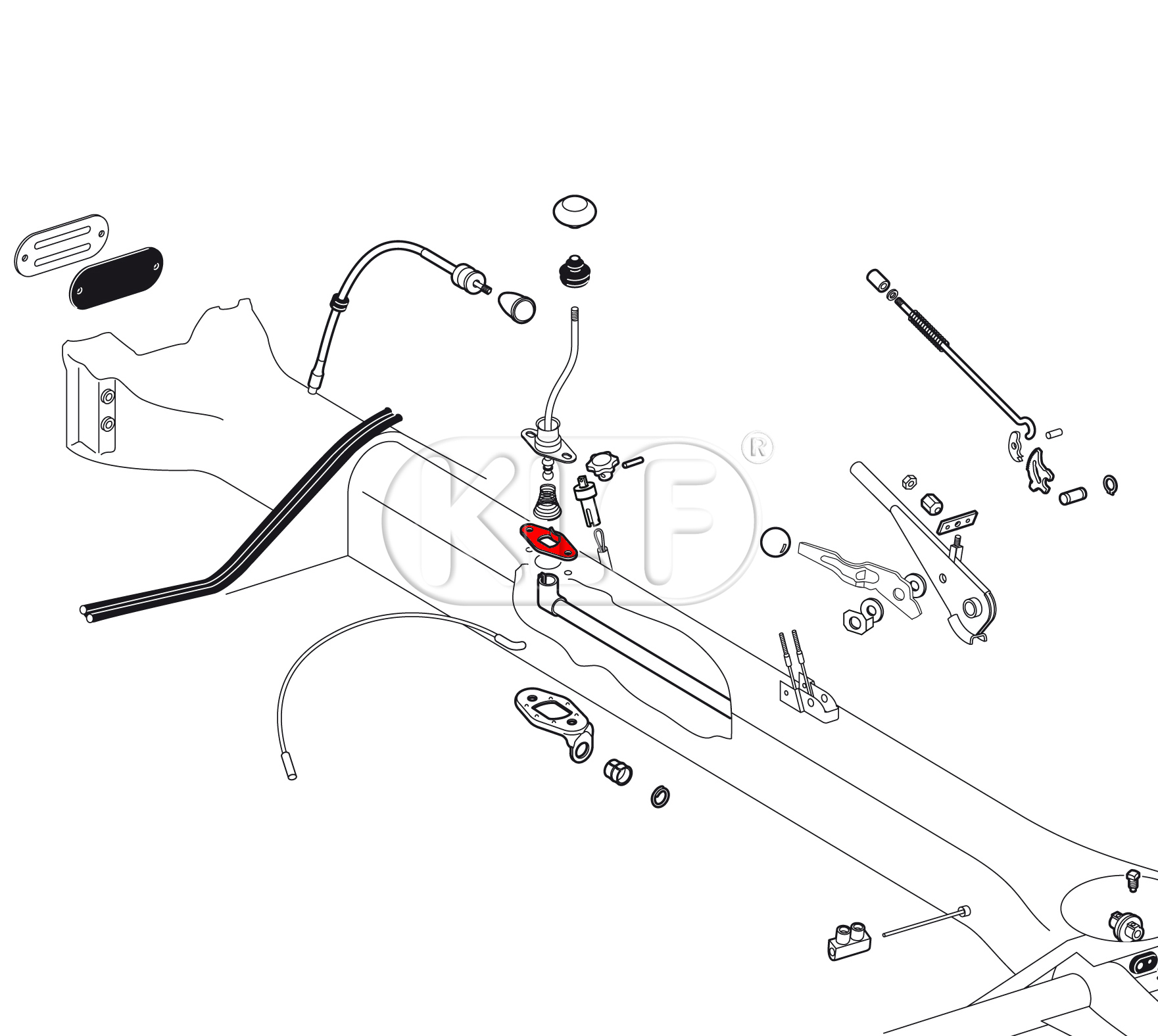 Here is a precision-crafted guide plate for the gear shift lever, suitable for Beetles from model year 08/71 onwards. In contrast to poorly stamped sheets from Brazil, this plate is manufactured to exact specifications and comes from Käferland Frankfurt's own production.