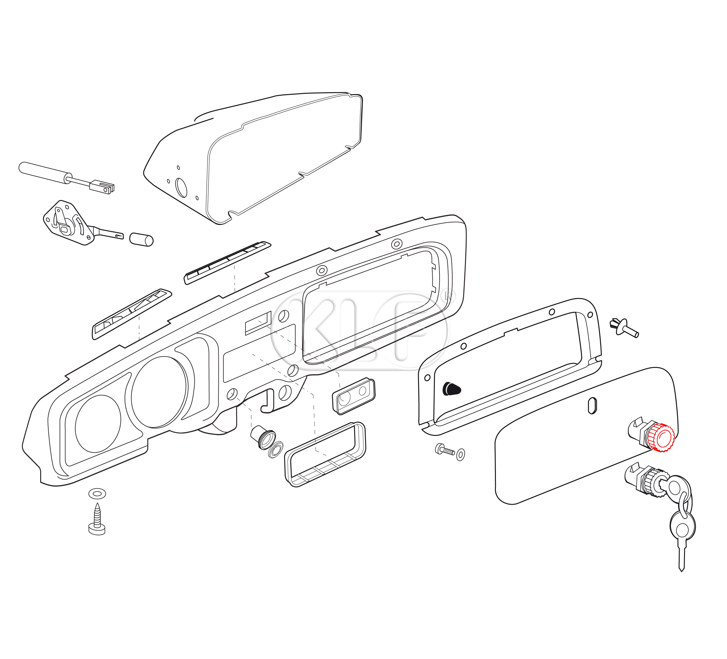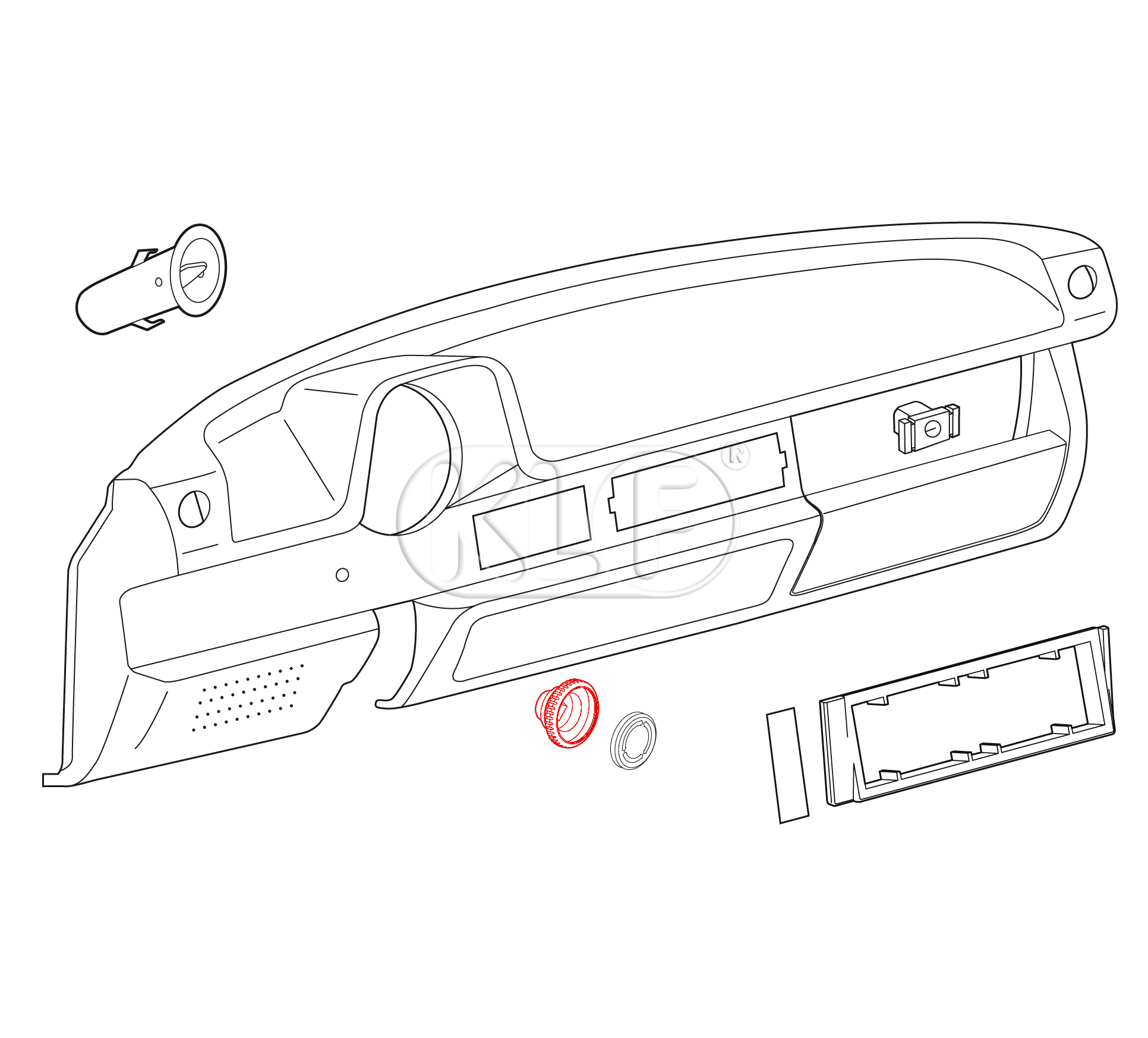 Product information "Fresh Air Control Knob and Glove Box Latch, not for padded dashboard, year 08/67 on and 1303"