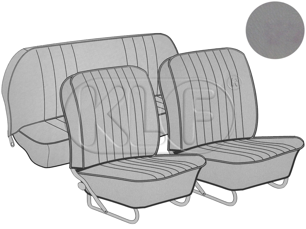 Seat Covers set front and rear, smooth leatherette, sedan, year 7/57-7/64, grey