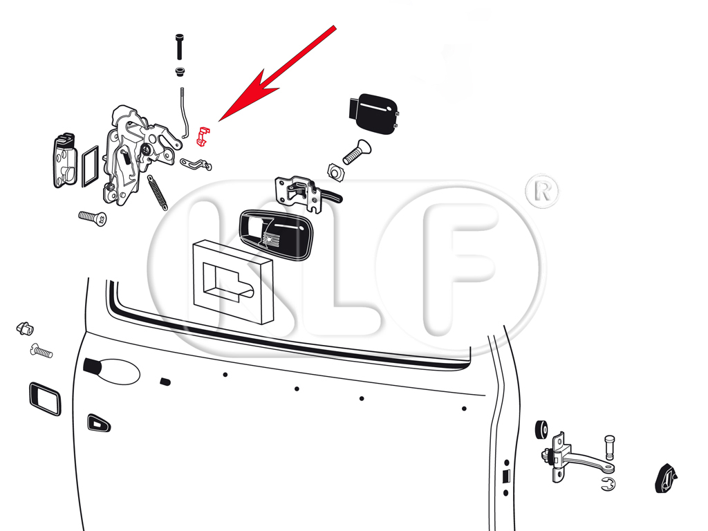 Product information "Clip, remote rod to lock mechanism, right, year 08/66 on"