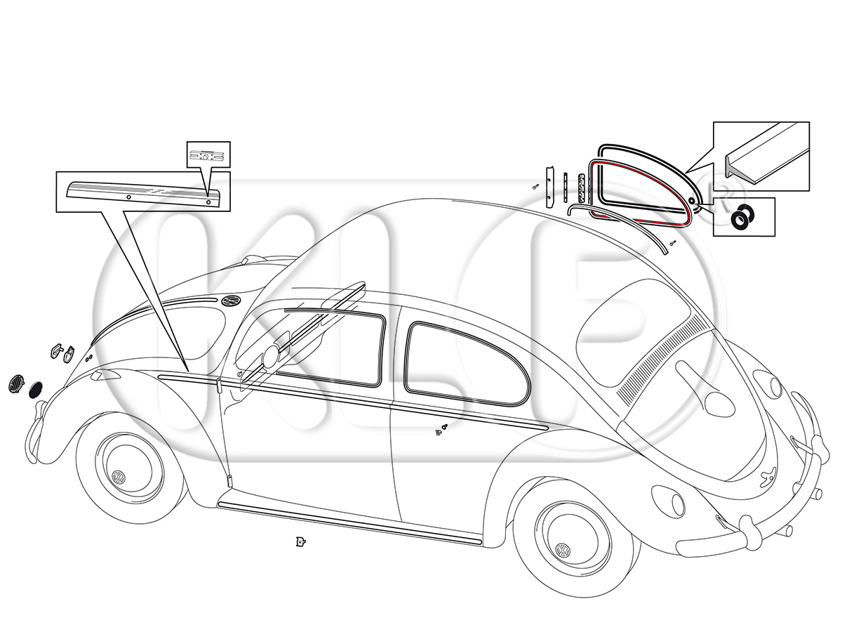 Artikelinformationen "Ausstellfensterdichtung hinten, Rahmen/Scheibe bis Bj. 07/64, (Paar)"