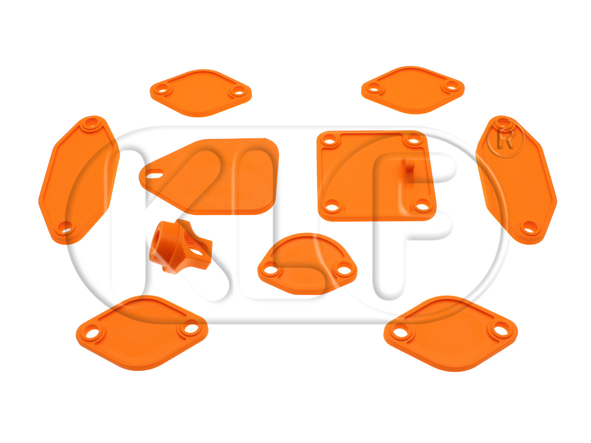 Mit diesen Verschlusskappen aus Kunststoff lassen sich die Kanäle und Öffnungen an einem Typ-1 Rumpfmotor mit Doppelkanal-Zylinderköpfen verschließen.