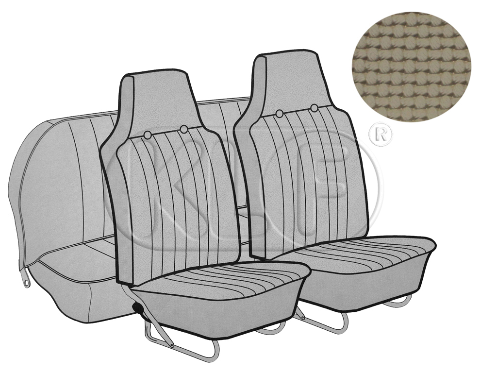 Product information "Seat Covers, front+rear, basket weave, convertible, with integr. headrest year 12/66-7/69, beige"