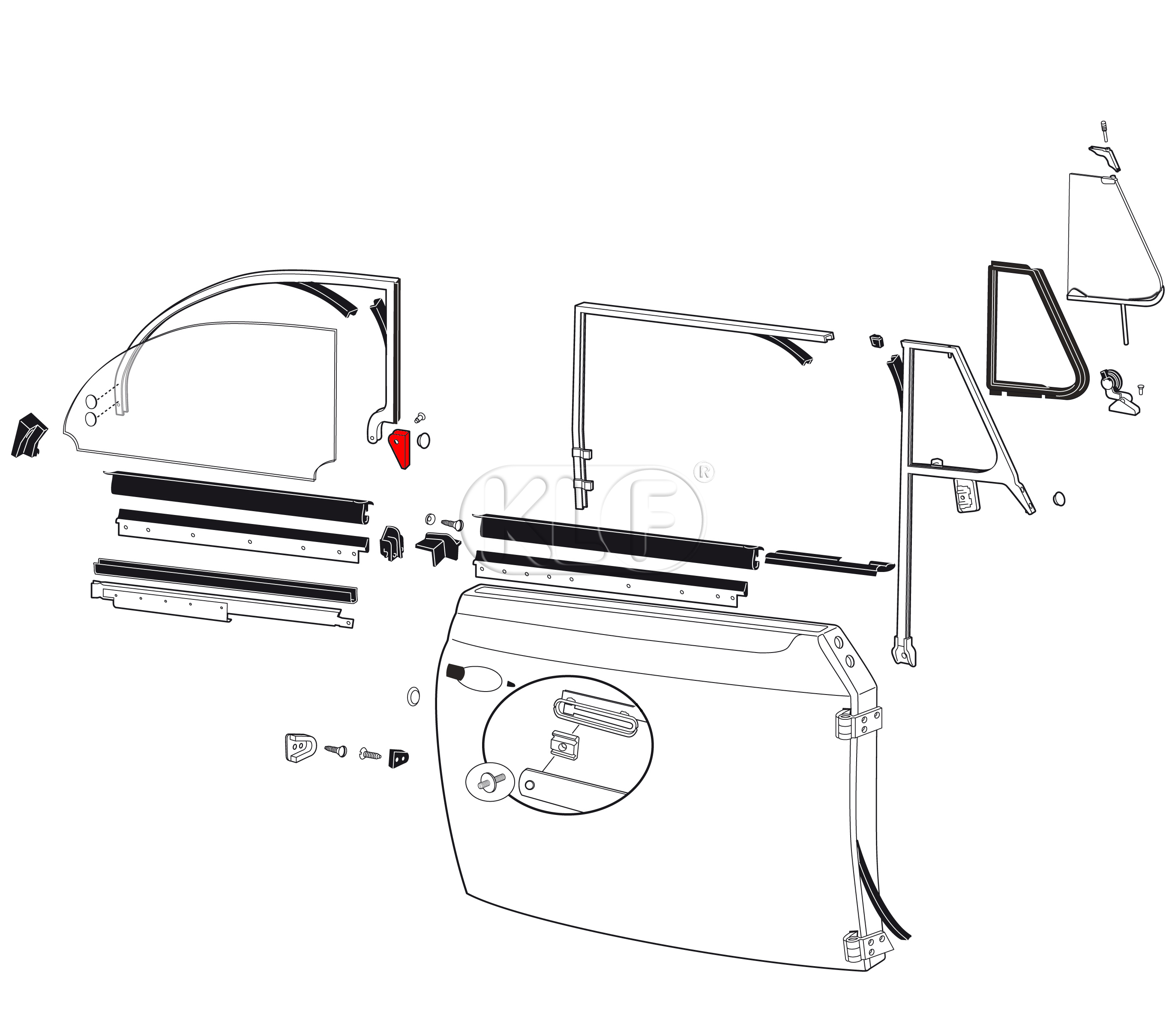 Hinge for Side Window, rear right, convertible, year 8/64 on